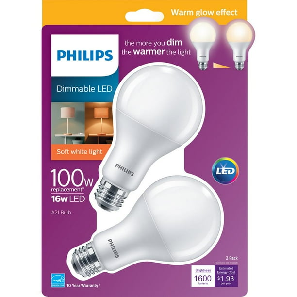 Philips 100W Equivalent Soft White A21 Dimmable Warm Glow LED Light Bulb (2Pack)