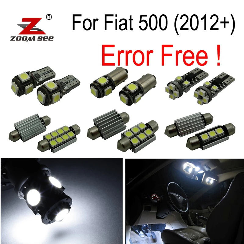 7pcs Canbus White Car Lamp LED Light Bulbs Interior Package Kit For 2012 2017 Fiat 500 Dome
