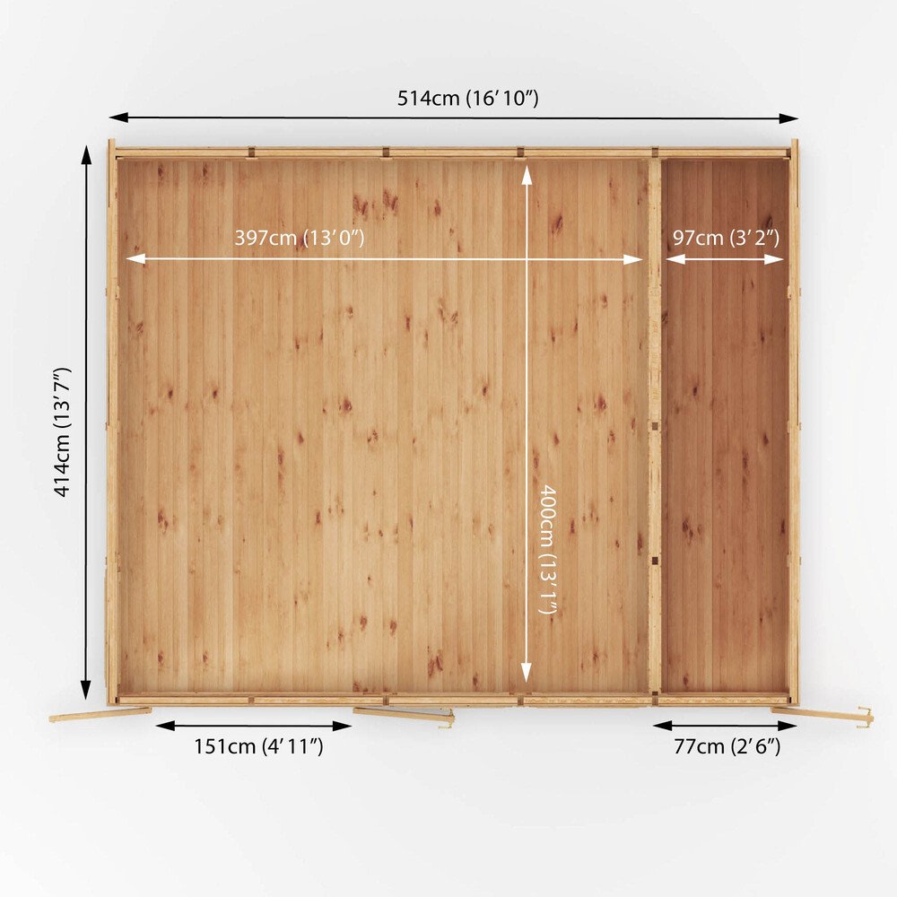 With free installation included, you can sit back and relax whilst we create a whole new space for you to enjoy. Insulated Garden Room with Side Shed 6 x 3m: Width: 617 cm. Depth: 387 cm. Height: 239 cm. Ridge Height: 239 cm. Wall Thickness: 72mm. Tongue & Groove Roof and Floor.