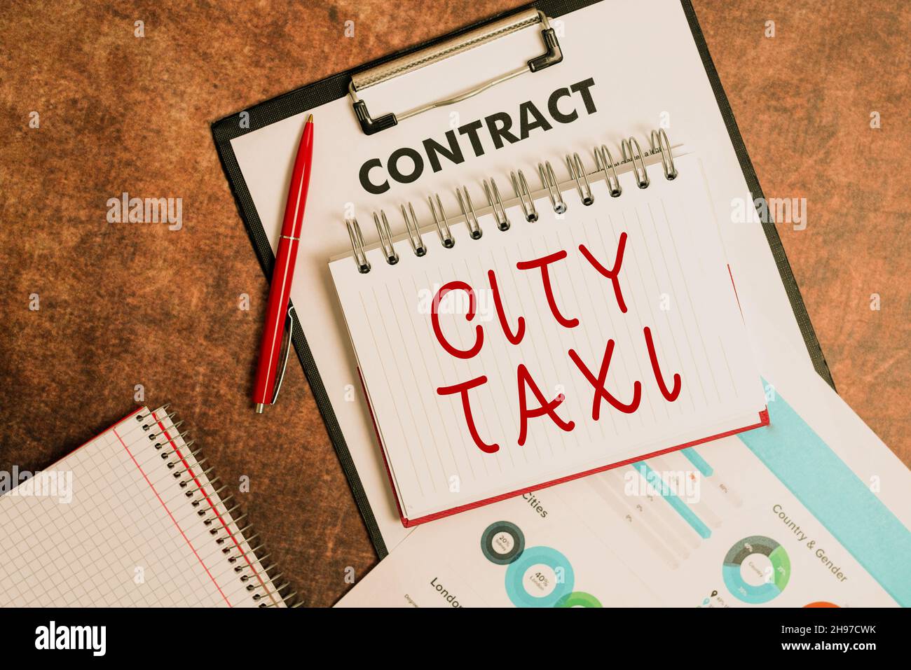 Hand writing sign City Taxi. Word Written on type of vehicle for hire with a driver often for a