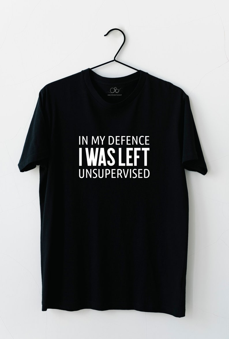 In My Defense I Was Left Unsupervised, Sarcastic Bday Gift, Sarcastic Slogan Shirt, Funny Sarcastic Shirt, Funny Mom Clothing,Sassy Clothing. (451) £9.92. £16.54 (40% off) Check out our in my defense i was left unsupervised shirt selection for the very best in unique or custom, handmade pieces from our t-shirts shops.