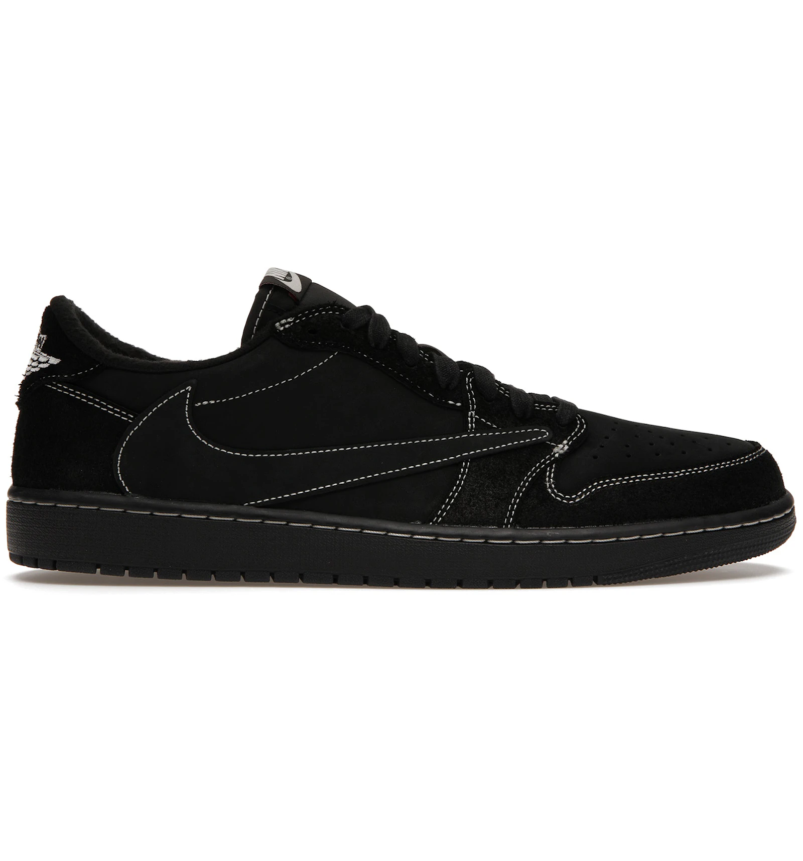 18. $1,594. Facts. The Travis Scott x Air Jordan 1 Retro Low OG SP 'Black Phantom' continues the Houston rapper's remixed series centered around Michael Jordan's debut signature shoe. This pair sports a black nubuck upper with tonal suede overlays and contrast white stitching throughout. Scott's signature reverse Swoosh decorates the.