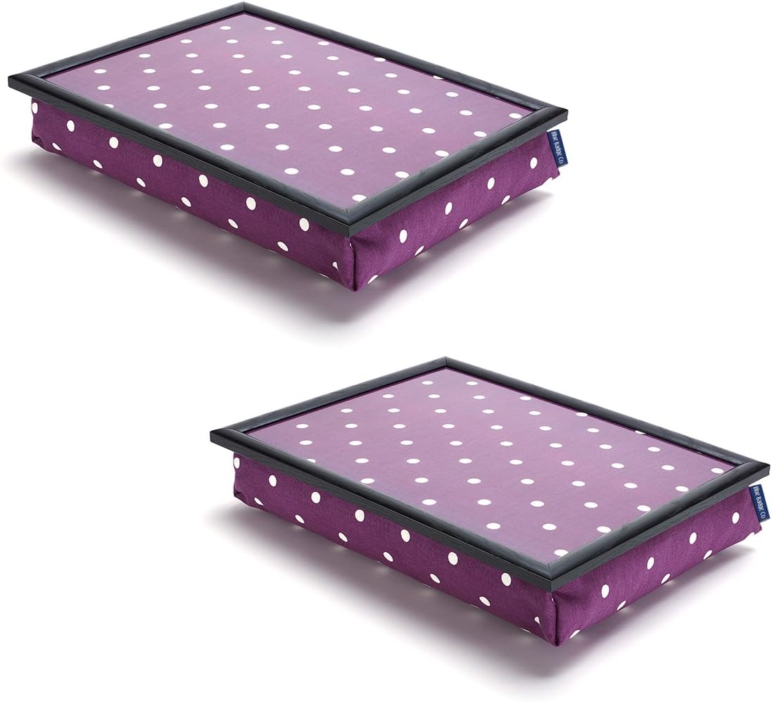 Pack of 2 Blue Badge Co Purple Polka Dot Lap Tray TV Dinner Bean Bag Bottom Cushioned Laptray