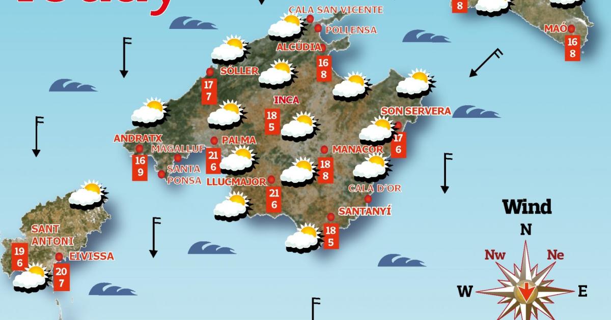 Live weather for Majorca, 14 day and 25 weather forecast for Majorca, updated regularly. Hourly daily weather forecasts for Majorca also provided. menu. menu. Holiday-Weather.com. Home; Europe; Southern Europe; Spain;. 28. Apr. 14° 57° Patchy rain possible °C °F; Show Close Hourly. 13. 55. 6:00 06:53 13. 55. 7:00.