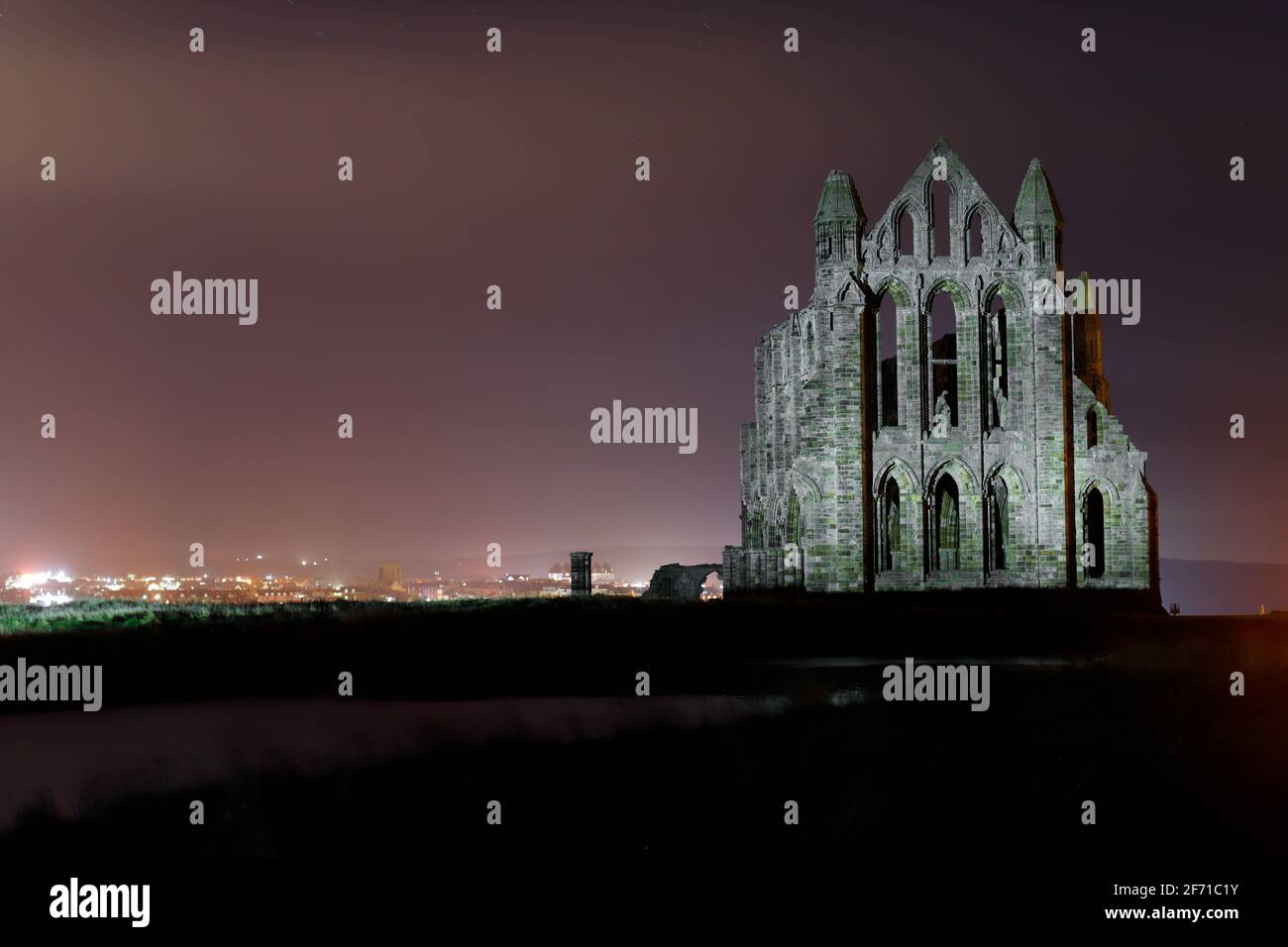 Whitby Abbey at night, illuminated by torch light Stock Photo Alamy