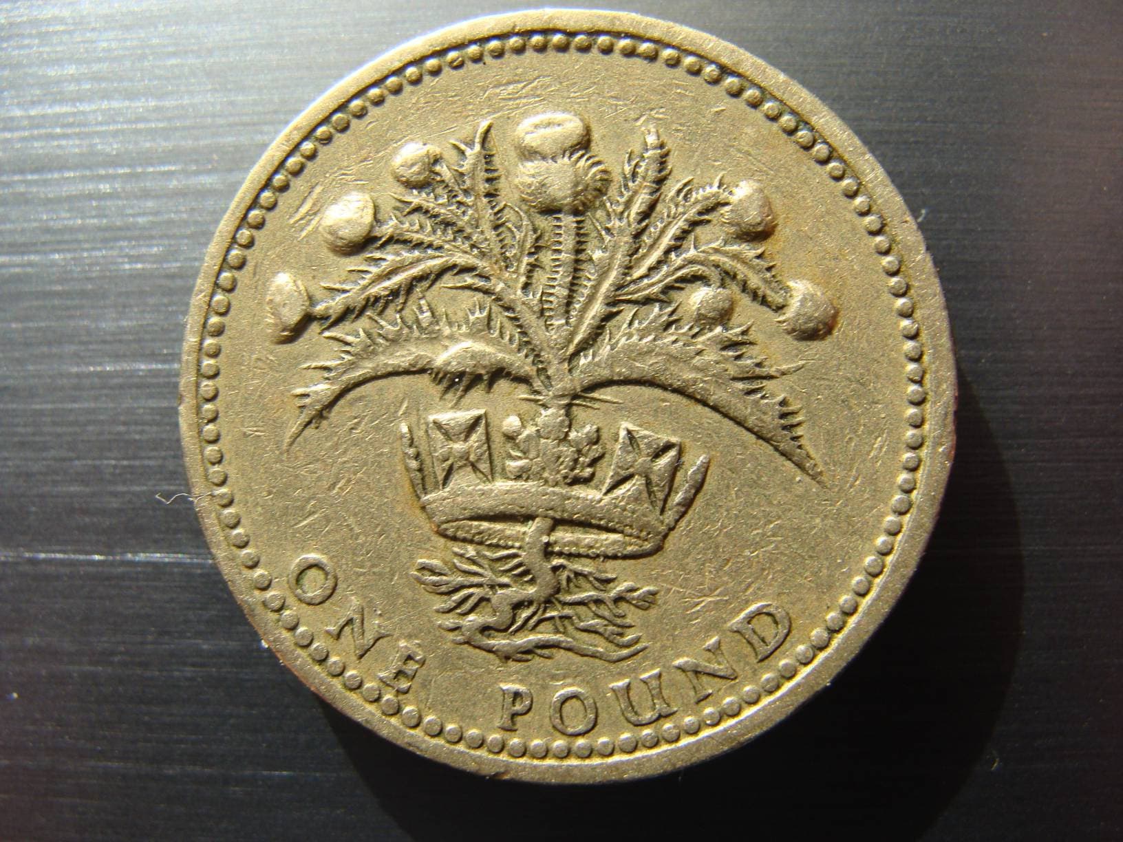 The £1 coin in base metal (as opposed to the gold sovereign, which has a nominal face value of one pound too), nickel-brass was introduced in 1983, as a replacement for the £1 banknote.. One Pound 1984 Thistle and Diadem, Coin from United Kingdom - detailed information. One Pound 1984 Thistle and Diadem, Coin from United Kingdom.