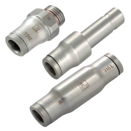 Universal-Thread Stainless SteelPush-to-Connect Tube Fittings for Air and Water. Often used in outdoor, damp, and washdown environments, these 316 stainless steel fittings will not corrode from water, salt, or chemicals. The male threaded ends mate with NPT, NPTF, BSPT, BSPP, and other universal threads, so you won't have to worry about.