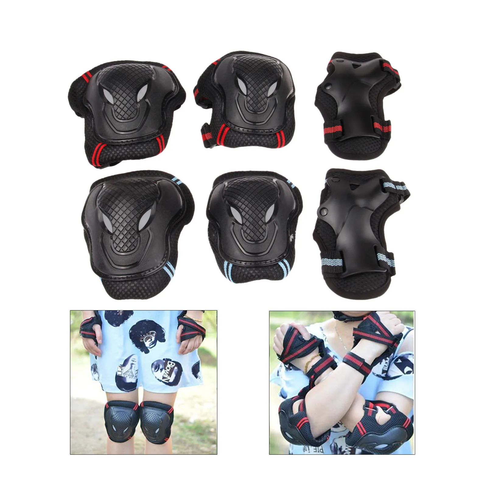 Roller Skates Skateboarding Skiing Wrist Knee Elbow Protector Set Adult Kids KneePads Protection