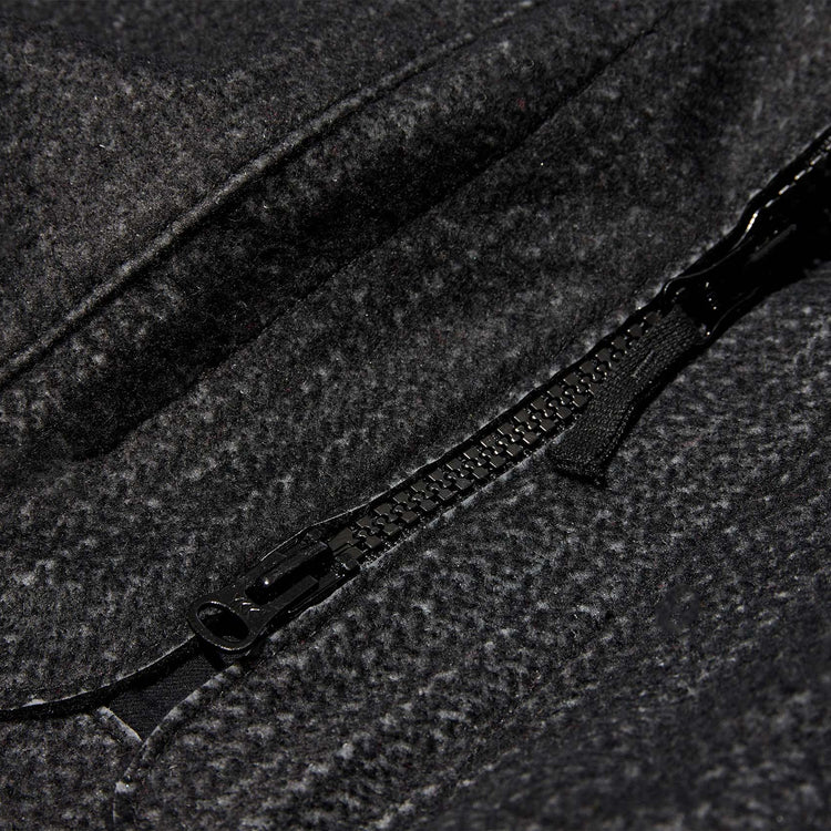 The Needle Punched Reflective Jacket from Stone Island is crafted in a polyester canvas plated with a highly reflective coating made with a resin bath incorporating thousands of glass microspheres. The reflective base is then needle punched to wool and viscose felt, lending a woolen appearance to the fabric and irregularly masking the light refraction for a three-dimensional appearance.