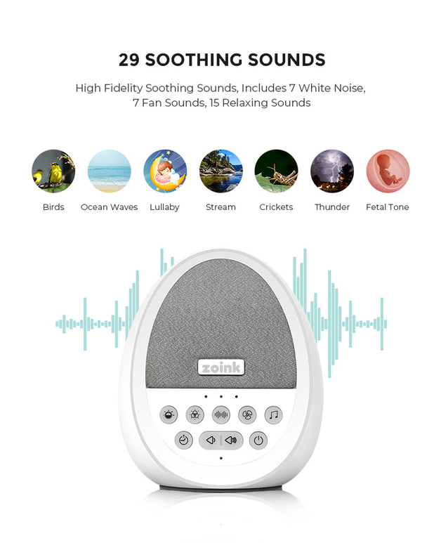 White noise can drown out disruptions and help you sleep peacefully.. It features 24 sounds, including white, pink, ocean waves, rain, and campfire, plus a night light, headphone jack, and timer.